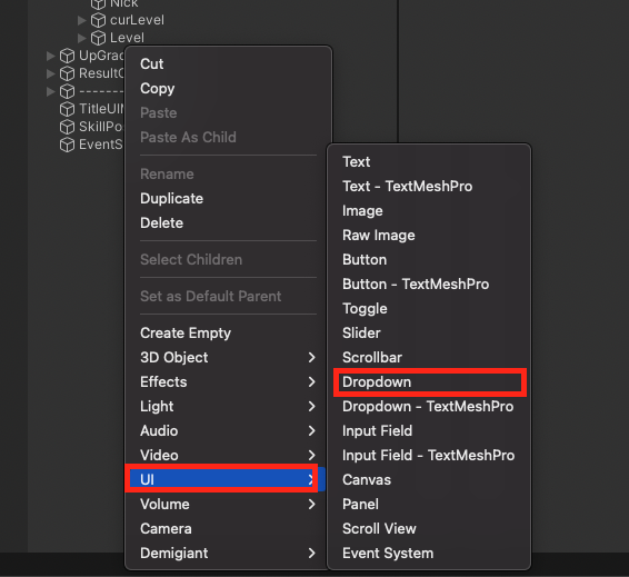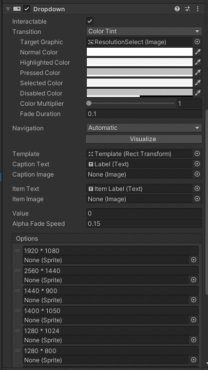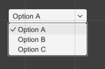 현재 진행하는 프로젝트 설정창을 만드는 중 DropDown이라는 유니티 내장 UI 기능을 사용해 보았다. 처음 접해보는 기능이라 구글 서치가 가 이루어졌고 생각보다 유용한 기능이었다. 먼저 드롭다운이라고 하는 기능은 생김새가 이렇게 생겼다.