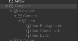 이렇게 Option의 텍스트를 변화 줄수 있고 Sprite는 옵션의 이미지를 추가 할수 있다. 자 이제 드롭다운의 기본적인 특성을 알아보자. 이 부분이 만들면서 버그도 많이 났고 애좀 많이 먹었던 부분이다. 먼저 드롭다운은 Template라고 비활성화 된 부분이 있다.
