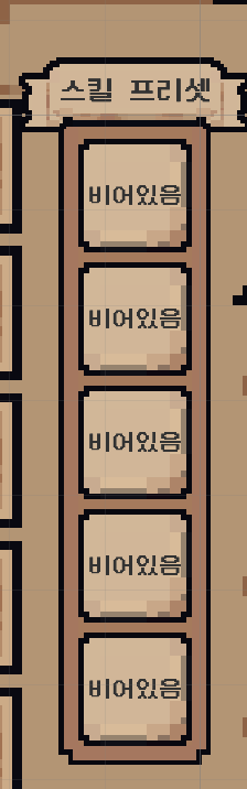 그리고 스킬 장착 프리셋을 제작하겠습니다. 이번엔 부모 요소를 CreateEmpty로 만들고 Add 컴포넌트로 Vertical Layout Group을 추가 해줍니다. 이 버티컬 레이아웃 그룹은 가로가 아닌 세로로 하위 아이템을 정렬하게 됩니다.