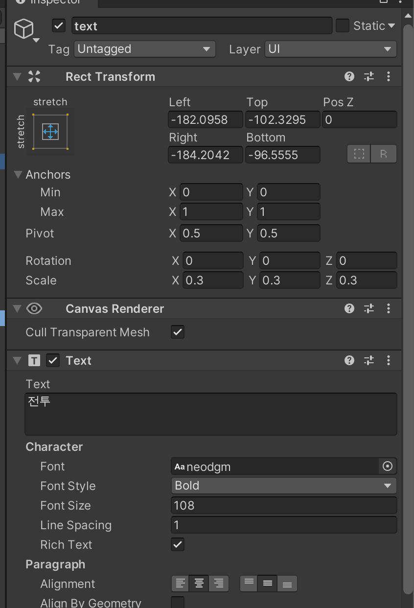 그래서 FIll Area와 Fill을 T를 눌러서 끝까지 조절해주면 꽉 차게 됩니다. 이렇게 전투 패널의 요소 배치 설명까지 완료했습니다. 완성된 이미지 레이아웃을 보고 스스로 배치를 해보는 시간을 가져봅니다.