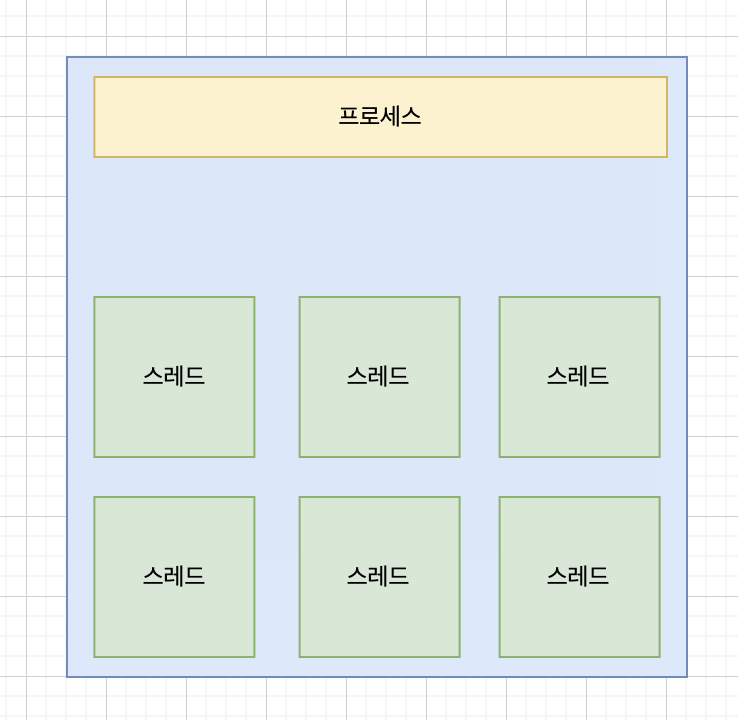 스레드는 프로세스 내에서 실행되는 여러 흐름의 단위입니다. Stack만 따로 할당받고 나머지는 공유하는 속성이있습니다.