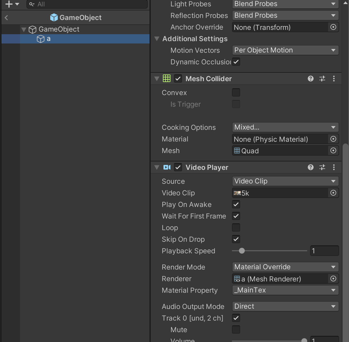 Object 에 mp4영상을 드래그 하면 Video Player 가 생깁니다. 그리고 프리팹화 시킵니다. Origin에 Image Tracking을 추가해줍니다.