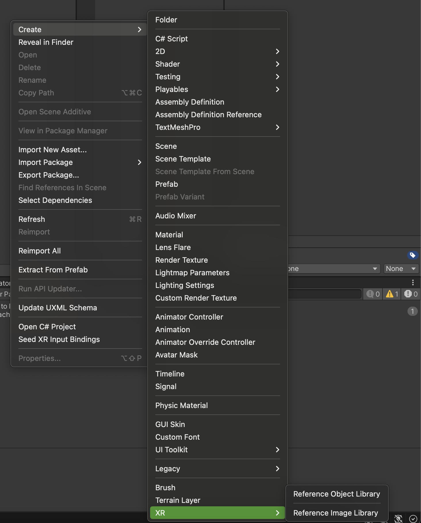 먼저 Create - XR - Reference Image Library 를 생성합니다.